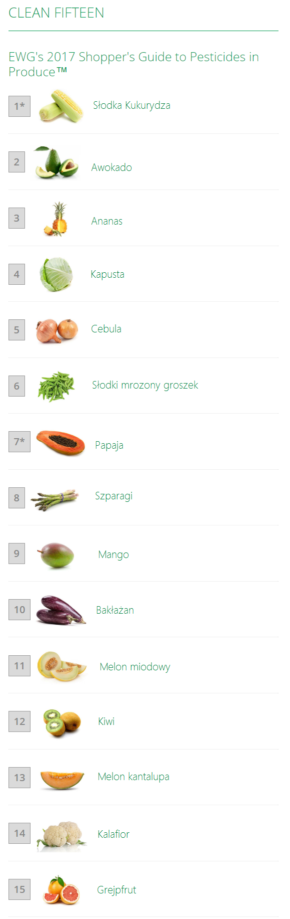 Lista owoców i warzyw, które posiadały najmniej pestycydów i pozostałosci po nich: „Czysta Piętnastka” – Clean Fifteen