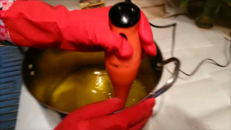 - Tłuszcz. W wysokim garnku podgrzewamy do temp. ca 45-50 stopni. Czekamy, aż ług osiągnie taką samą temperaturę.